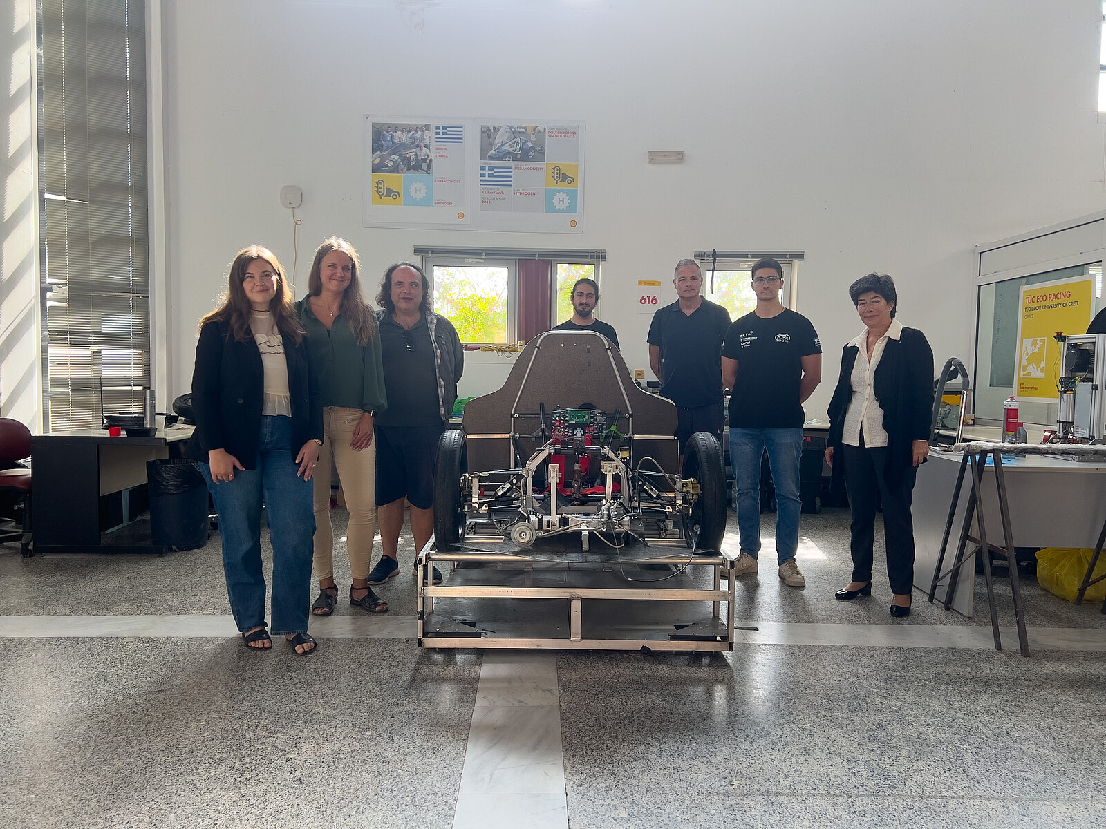 Η επίσκεψη στη Σχολή ΜΠΔ ξεκίνησε από το Εργαστήριο Συστημάτων Υποστήριξης Αποφάσεων (ΕΡΓΑ.Σ.Υ.Α.), όπου έγινε το καλωσόρισμα, η παρουσίαση των στόχων της Σχολής και του ειδικότερου αντικειμένου του εργαστηρίου καθώς και των εκπαιδευτικών και ερευνητικών του πεδίων. Ακολούθησε επίσκεψη στο εργαστήριο Ευφυών Συστημάτων και Ρομποτικής, όπου η ομάδα φοιτητών TUCER τους παρουσίασε το όχημα υδρογόνου, το οποίο καταγράφει σημαντικές νίκες στους αγώνες της Shell Eco Marathon, όπου λαμβάνει μέρος. Στη συνέχεια, οι επισκέπτες μετέβησαν στο εργαστήριο CAD, όπου έγινε επίδειξη της σχεδίασης αντικειμένων 2 ή 3 διαστάσεων και της εκτύπωσής τους σε 3d εκτυπωτές, ενώ παρουσιάστηκαν και δυνατότητες reverse engineering, μέσω 3d scanner. Στο εργαστήριο Μικροκοπής και Κατασκευαστικής Προσομοίωσης (Μ3), οι εκπαιδευτικοί είχαν την ευκαιρία να δουν τον εξοπλισμό και να μάθουν για τις τεχνολογίες βελτιστοποίησης που εφαρμόζονται για επεξεργασίες τόρνευσης, κοπής γραναζιών, χάραξης με λέιζερ κ.ά. Ακολούθησε επίσκεψη στο εργαστήριο CAM, όπου η ομάδα φοιτητών FS-TUC παρουσίασε τις κατασκευαστικές και τεχνικές προκλήσεις του οχήματός τους με το οποίο λαμβάνουν μέρος στους αγώνες που διοργανώνει η Formula για πανεπιστήμια αλλά και τις υψηλές διακρίσεις τους. Η επίσκεψη ολοκληρώθηκε με ξενάγηση στην ερευνητική ομάδα Βιομηχανικών και Ψηφιακών Καινοτομιών (INDIGO), όπου η ερευνητική του ομάδα πραγματοποίησε μια διεξοδική παρουσίαση του τρέχοντος έργου του, την διεπιστημονικότητα που το χαρακτηρίζει και τις σημαντικές συνεργασίες που καταγράφει σε τοπικό, εθνικό, ευρωπαϊκό και διεθνές επίπεδο, συμπράττοντας με πλήθος φορέων και οργανισμών.
